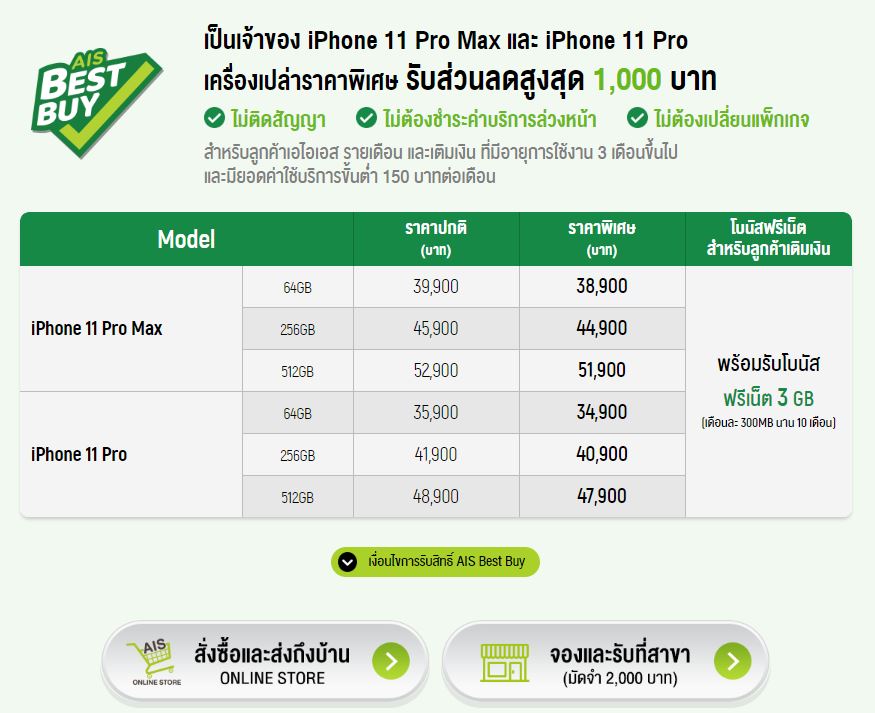 ผ่านลิงค์https://www.ais.co.th/iphone11pro/index.html