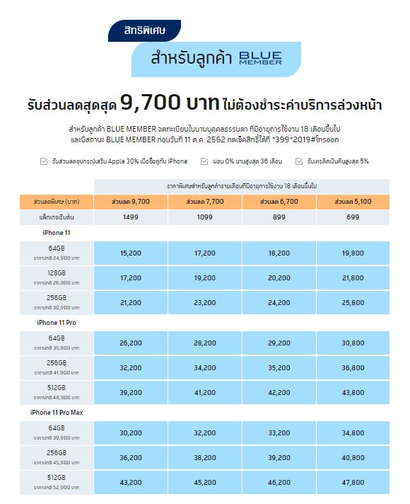 2. ค่าย true ระหว่างวันที่ 11 ตุลาคม 2019 - 17 ตุลาคม 2019 ค่ามัดจำ 5,350 บาท (ราคารวมภาษีมูลค่าเพิ่ม) สินค้าจำนวนจำกัด