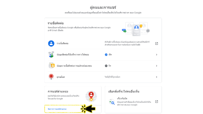 - ไปที่ account.google.com เพื่อเปลี่ยนการตั้งค่านี้การแชร์ตำแหน่ง (หยุดชั่วคราว) ของบัญชีของคุณ